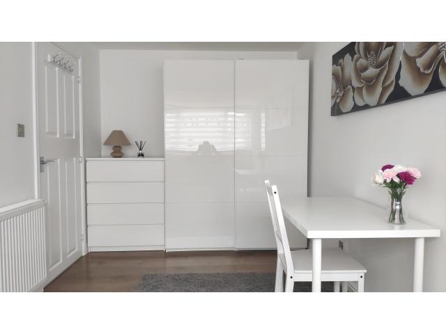 Witam, do wyanjęcia duży pokój w czystym i zadbanym domu. Pokój posiada osobną łazienkę z toaletą i prysznicem. Pokój jest umeblowany (widoczne na zdjęciach). Do dyspozycji: pralka, suszarka, lodówka, piekarnik, mikrofalówka, darmowy parking na ulicy, szybki internet. W domu mieszka małżeństwo z dziećmi. Dom znajduję się 5 min na piechotę od general hospital, common park, sainsburys local, pure gym. Cena to £130 za tydzień (wszystkie rachunki wliczone) + wymagany dwutygodniowy depozyt.
